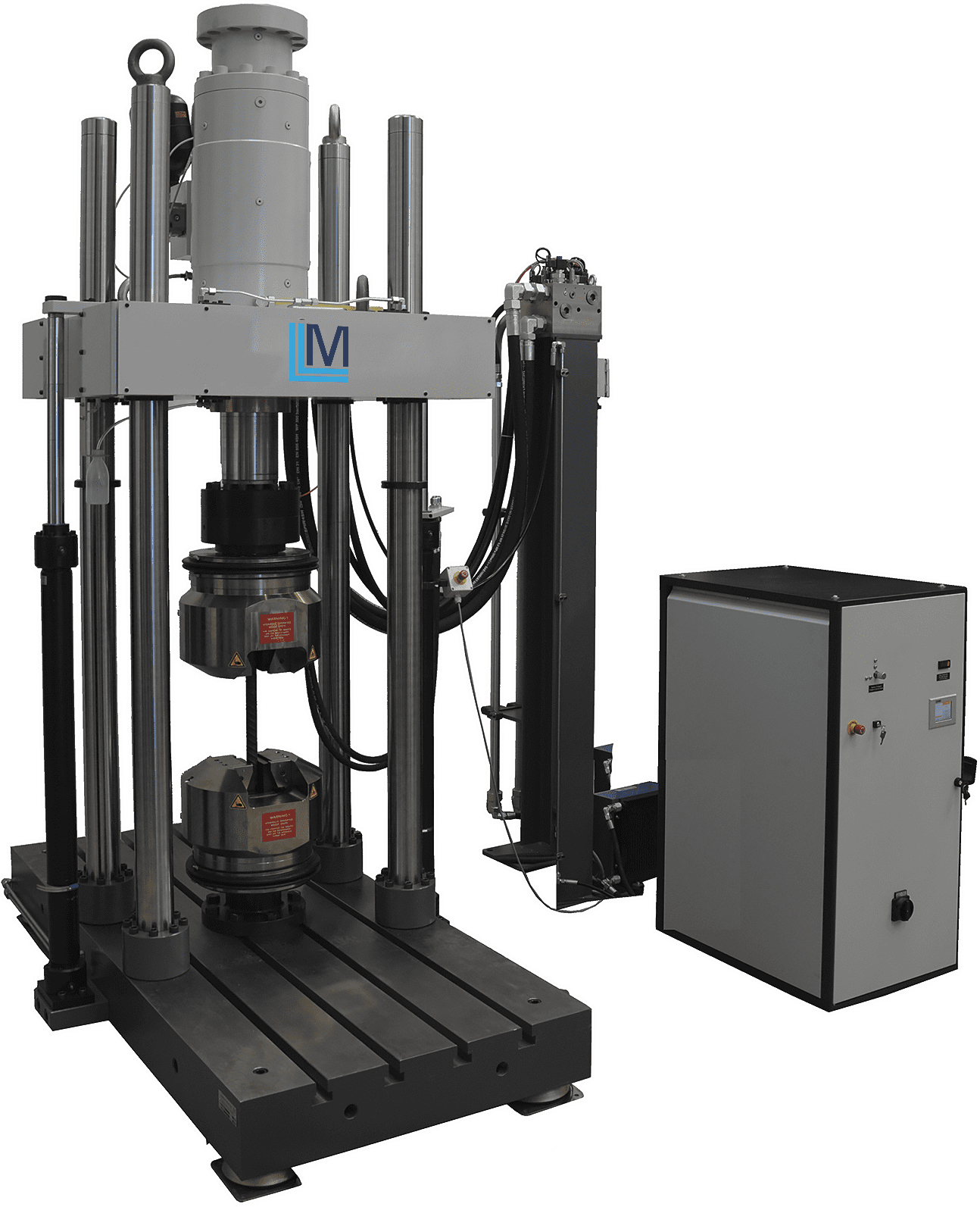 Испытательная машина МГД-100 в напольном двухколонном исполнении с высокой продольной и поперечной жесткостью и точной геометрией рамы нагружения. Предназначена для статических и динамических испытаний на растяжение, сжатие, изгиб, длительную прочность/ползучесть/релаксацию напряжений, МЦУ и МнЦУ с переходом нагрузки «через 0», циклическую трещиностойкость, механику разрушения, различных материалов, компонентов и готовых изделий.