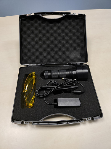 Большой светодиодный УФ фонарь АВМ УФ 160БК использует передовую технологию источника холодного света LED. В качестве источника ультрафиолетового излучения применяются 3 светодиода Nichia 5 Вт 365 нм NCSU033B (T) и оптические линзы.